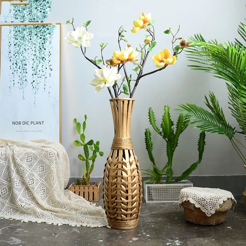 Grand Vase à Poser au Sol en Bambou