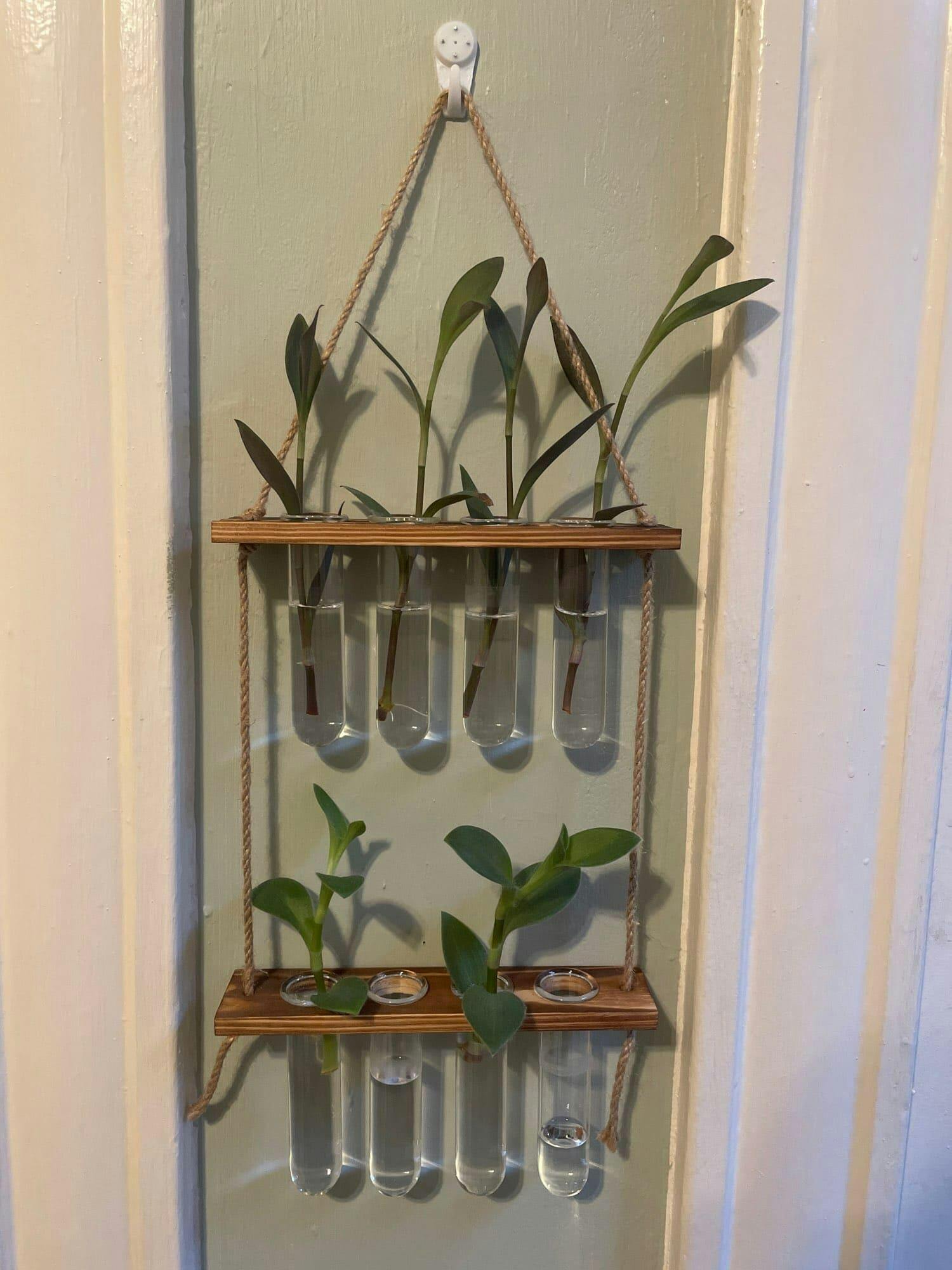 Non seulement est-il esthétiquement remarquable, mais sa qualité artisanale garantit également une durabilité exceptionnelle. Le support en bois de haute qualité assure une stabilité fiable, tandis que les tubes à essai en verre délicat mettent en valeur la beauté naturelle de chaque fleur.
